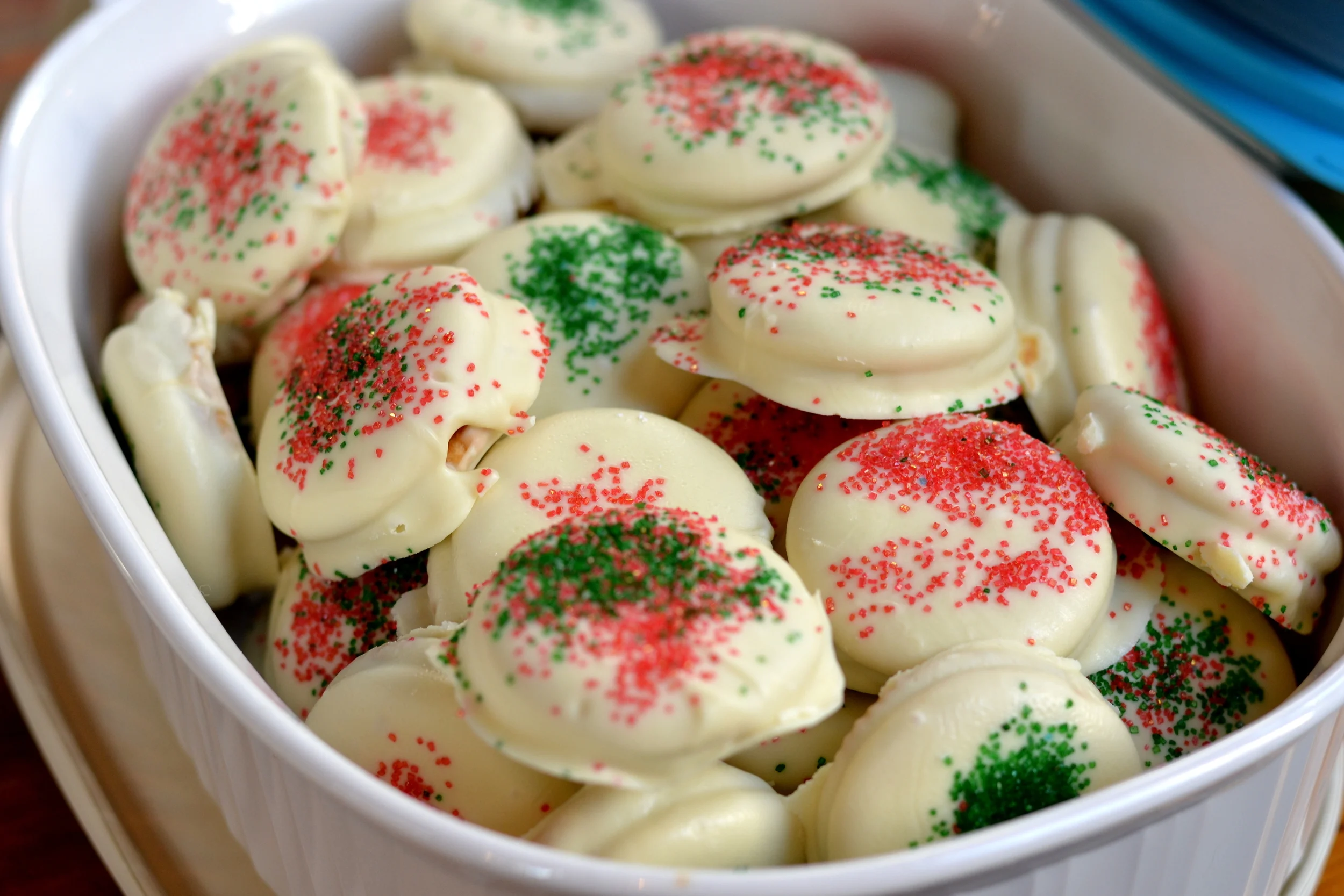 In the spirit of holiday cheer, my sub-group of mamas got together last Sunday for a cookie exchange. It was really nice to see everyone together, with husbands and partners along for introductions, and I came home with a brilliant little collection of holiday cookies that I’ve been eating all week.